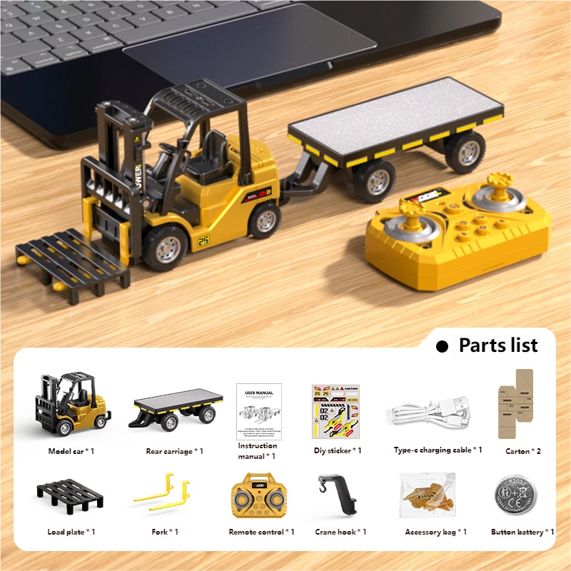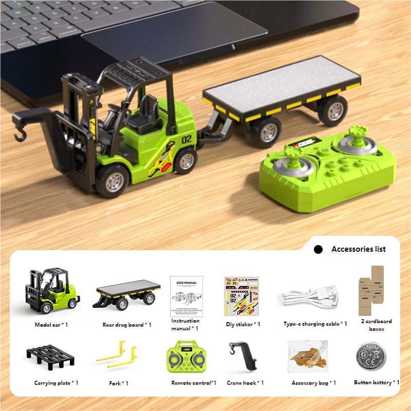 New Mini Remote Control Alloy Forklift Simulation 2-in-1 Engineering Vehicle with Pallet